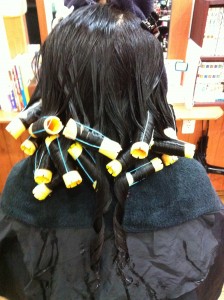 営業していて、一番難関なメニュー。縮毛矯正をされていらっしゃるお客様にデジタルパーマをかける。