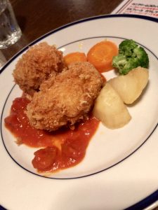 気になったのでトマトソースのカニクリームコロッケもシェア♪