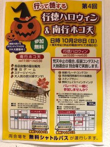 10月28日(日)にハロウィンイベントがあります!お店の前は車が通れませんので、当日は駐車場が使えませんのでご了承下さい!